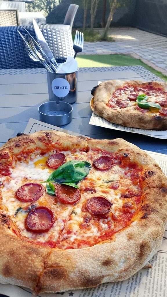 Napoli Pizza, 72 saat dinlendirilen hamurun elle açılmasıyla hazırlanıyor ve 400 derecelik özel fırında 1–2 dakikada pişiriliyor.